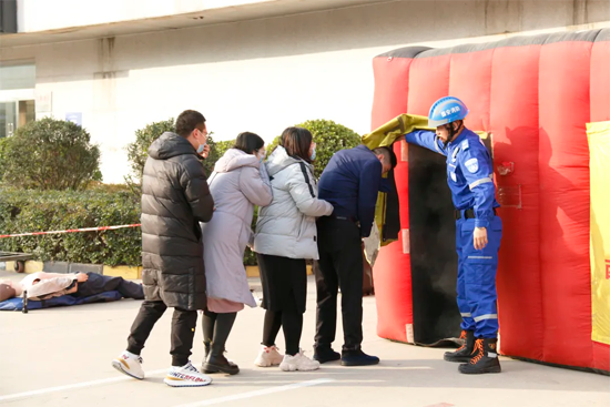 會后還進行了實戰(zhàn)演練,學習了心肺復蘇的急救知識和滅火器的使用方法,并組織員工在火災現(xiàn)場模擬帳篷內(nèi)進行逃生演練。