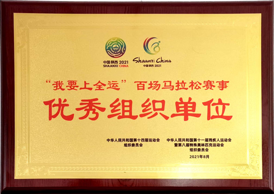 陜西西風(fēng)烈賽事有限公司作為百場(chǎng)馬拉松賽事的籌辦單位之一,榮獲了“我要上全運(yùn)”百場(chǎng)馬拉松優(yōu)秀組織單位榮譽(yù)表彰。