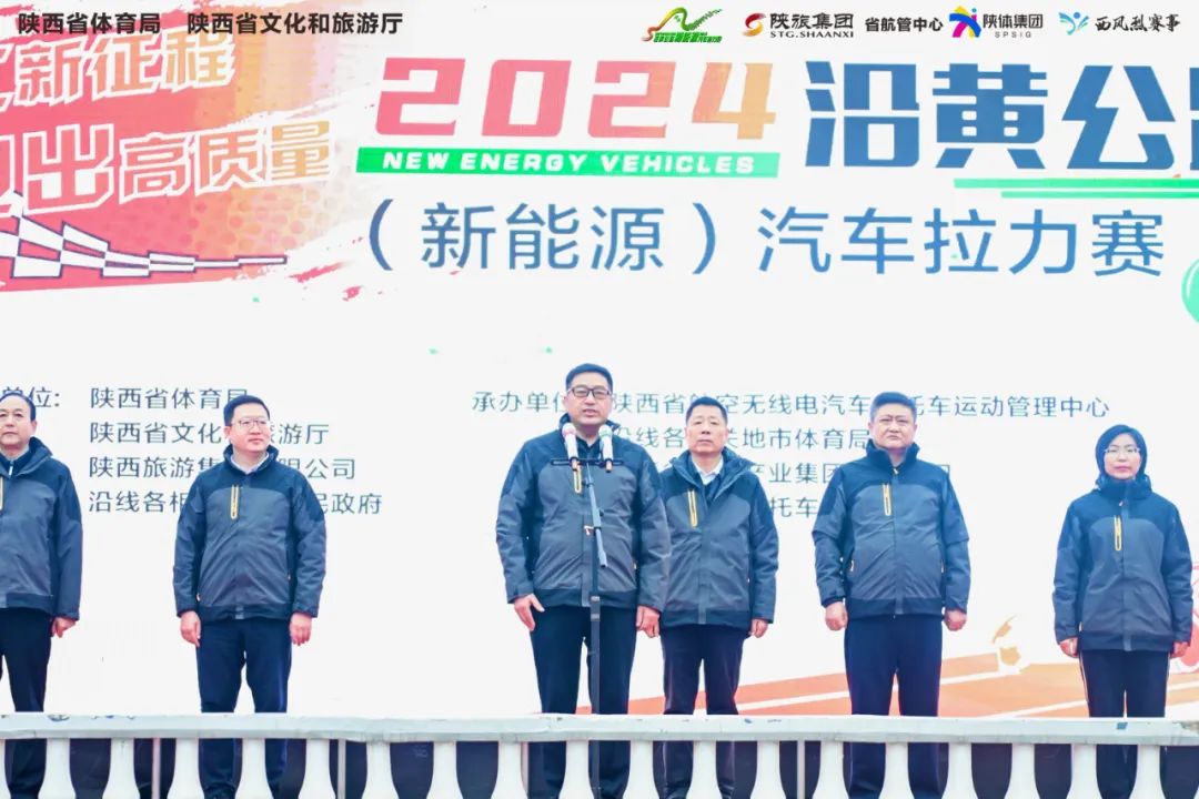 陜西省體育局黨組成員、副局長李長軍宣布“駛上新征程 跑出高質量”2024沿黃公路(新能源)新能源汽車拉力賽開幕!