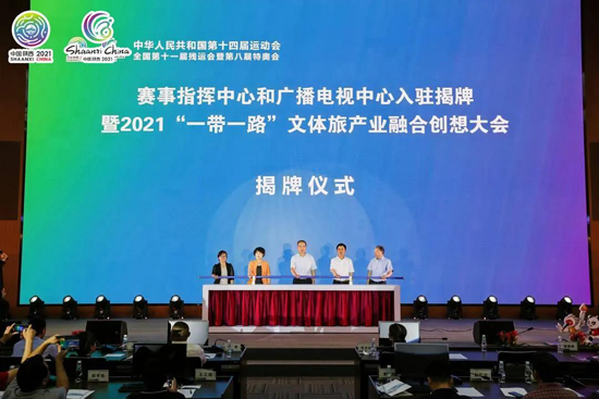 6月25日,在舉國上下熱烈慶祝中國共產黨成立100周年、十四運會開幕式進入倒計時81天之際,十四運會和殘特奧會賽事指揮中心和廣播電視中心入駐揭牌暨2021“一帶一路”文體旅產業融合創想大會在陜西國際體育之窗盛大開幕。來自十四運會和殘特奧會組委會、陜西省文旅廳、省體育局、省殘聯、西安高新區管委會、西安體育學院、省體育訓練中心和各運動項目管理中心、省體育科學研究所、各省市體育產業集團、阿里體育、壹體研究院等相關單位領導嘉賓出席會議。