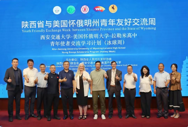 7月3日,陜西省與美國懷俄明州青年友好交流周結營儀式在西安交通大學興慶校區圓滿舉辦。西安交通大學體育中心主任劉長江,西安高新第一中學副校長蔡斌,陜西省體育產業集團有限公司副總經理、陜西創聚冰雪體育文化有限公司董事長景啟智,總經理景梅等領導嘉賓出席儀式并簽約冰球運動友好發展戰略合作三方諒解備忘錄。