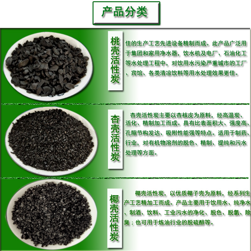 水處理應(yīng)用:產(chǎn)品采用優(yōu)質(zhì)果殼、椰殼為原料,廣泛應(yīng)用于飲用水、生活用水,飲料用水、自來水廠、電廠鍋爐用水、工業(yè)純水凈化,也用于各種工業(yè)廢水的凈化、提純等,可有效去除水中的有機(jī)物、異味、余氯、酚、汞、鐵、鉛、砷、鉻、硅膠、氰化物等有害物質(zhì)及有效除嗅去色。