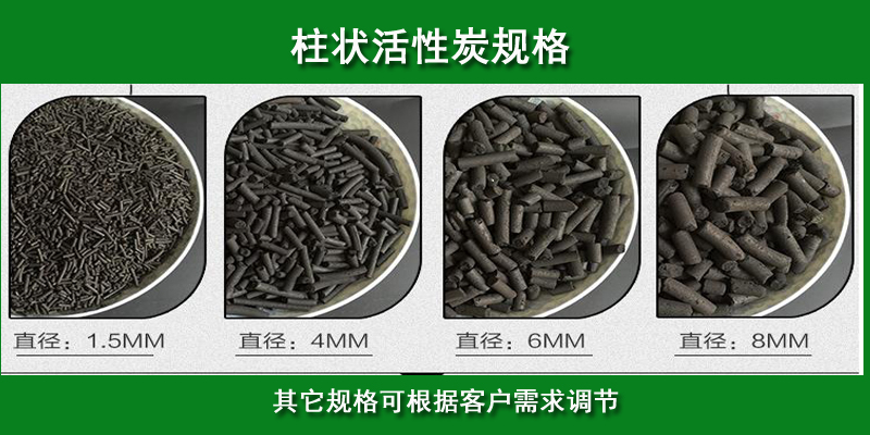 煤質(zhì)柱狀活性炭常用規(guī)格型號:1.5mm 3.0mm 4.0mm 6.0mm 8.0mm其它規(guī)格可隨用戶需求調(diào)節(jié)。